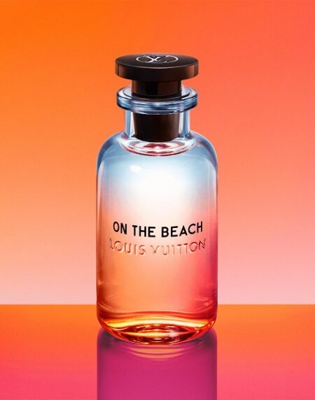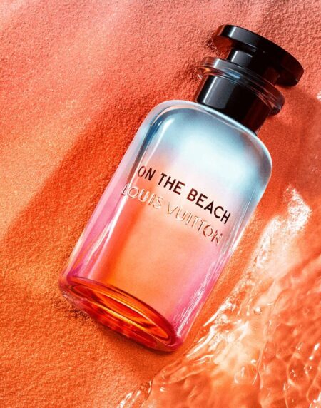Louis Vuitton's "On The Beach" is a unisex fragrance that aims to evoke the feeling of a warm beach. It's a Citrus Aromatic fragrance, featuring top notes of Yuzu and Neroli, a heart of Pink Pepper, Rosemary, Sand, Thyme, and Cloves, and a base of Cypress. The fragrance was launched in 2021, with